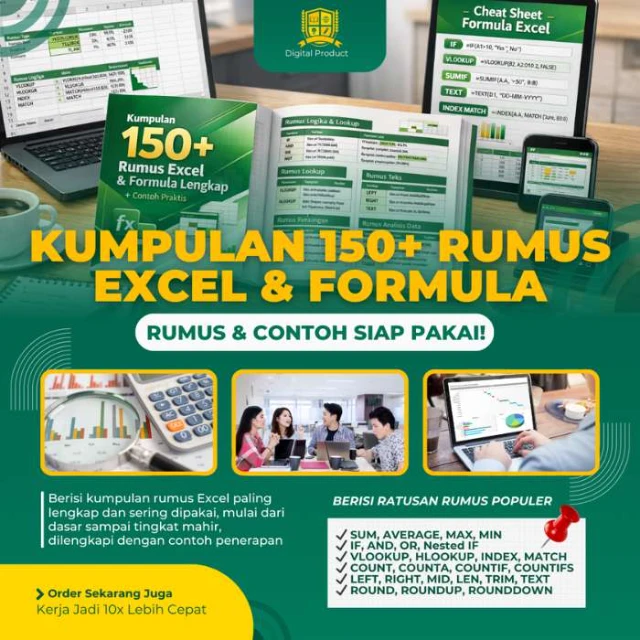 Promo Khusus Hari ini !!! HANYA melalui halaman ini Anda bisa mendapatkan (1 Paket Kumpulan 150+ Rumus Excel & Formula) TANPA bayar mahal. Silahkan centang checkbox di atas!